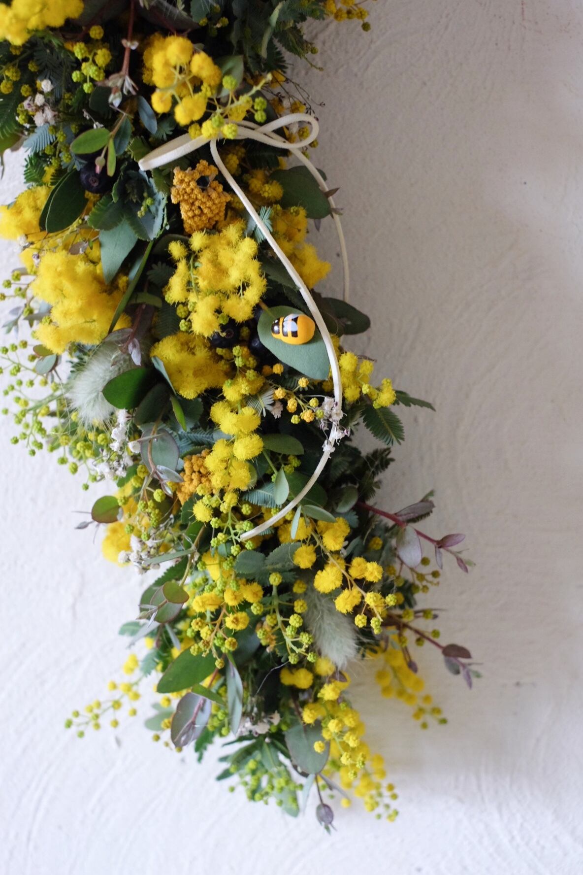 使用花材:ミモザアカシア、ユーカリ、カスミソウなど